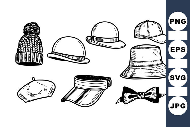 Hand Drawn Vintage Hat Clipart Bundle For Designers