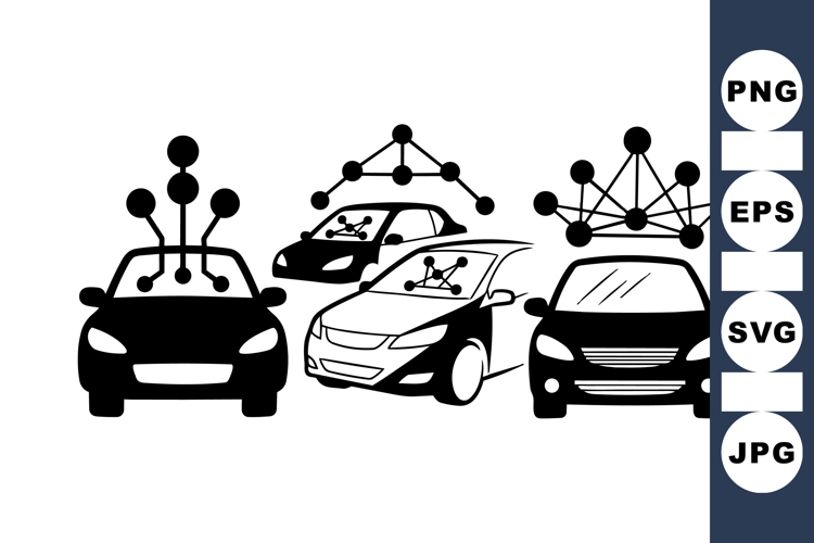 Autonomous Vehicle Graphics Smart Car Clipart Set Driverless Car Illustrations Electric Vehicle Designs Futuristic Car Artwork Connected Vehicle Icons Smart Sensor Clipart Ai Car Technology Set Robotic Transport Graphics Modern Vehicle Illustrations