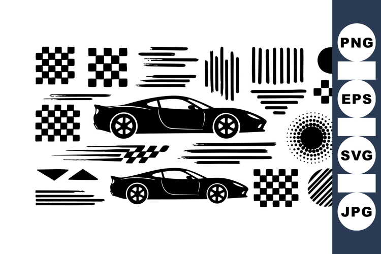 Racing Car Clipart Checkered Flag Design Automotive Clipart Bundle Car Silhouette Set Speed Lines Vector Motor Sport Icons Race Track Graphics Fast Car Illustration Race Day Vector Vehicle Icon Set