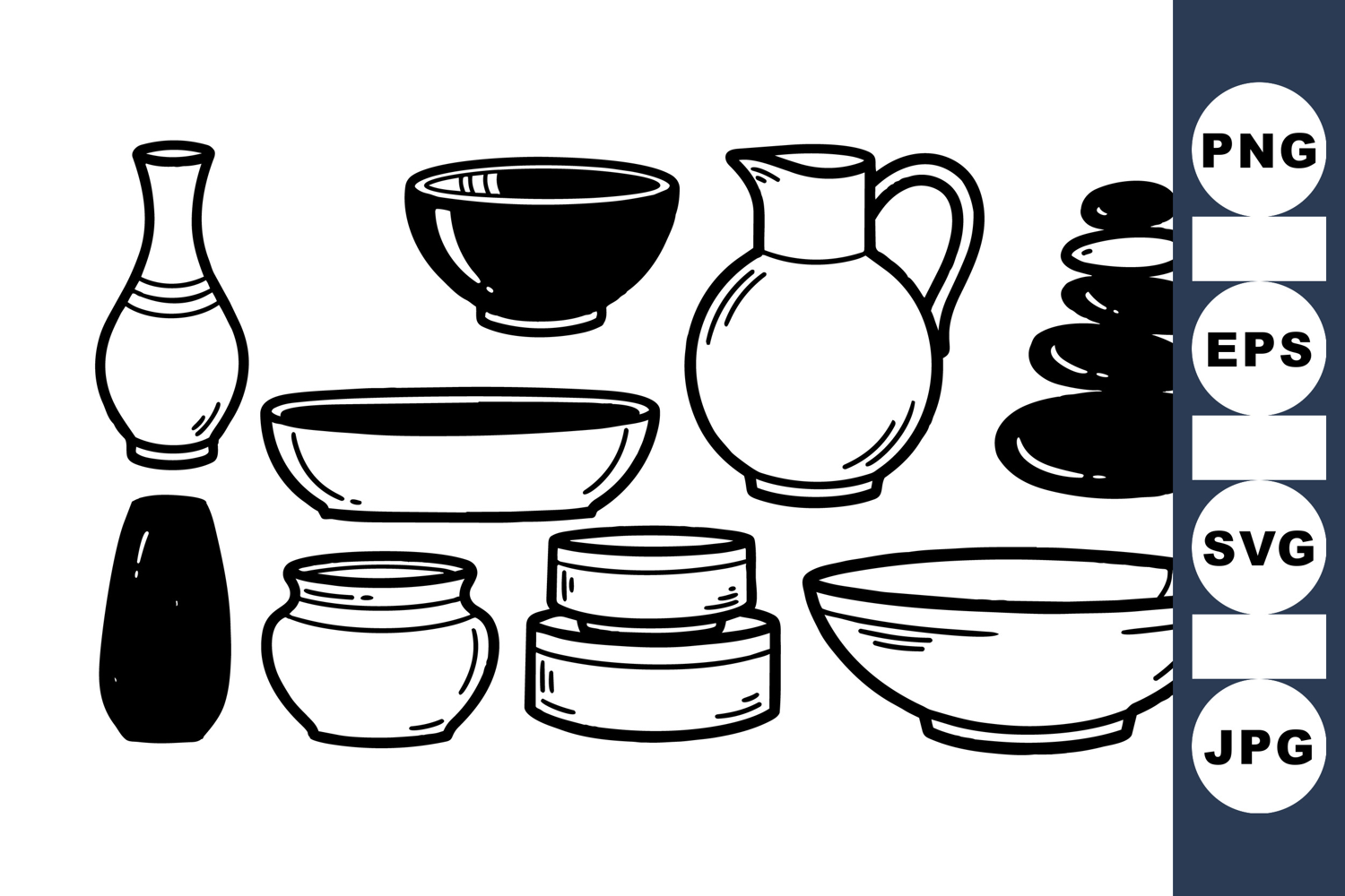 Hand Drawn Pottery Rustic Ceramic Set Vintage Clay Clipart Pottery Craft Bundle Ceramic Jar Collection Artisan Pottery Graphics Handmade Bowl Set Black And White Pottery Stoneware Design Pack Clay Jug Clipart