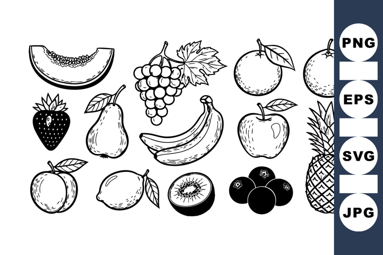 Hand Drawn Fruit Summer Fruit Graphics Black And White Fruit Vintage Fruit Clipart Fruit Sketch Bundle Fruit Coloring Set Retro Fruit Illustrations Fruit Botanical Clipart Organic Fruit Designs Fruit Line Art