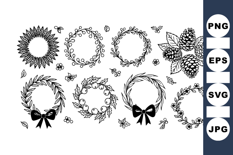 Black And White Art Hand Drawn Floral Floral Wreath Clipart Spring Floral Bundle Wedding Invitation Design Vector Flower Wreath Botanical Wreath Set Summer Wreath Collection Scrapbook Floral Kit Vintage Botanical Decor