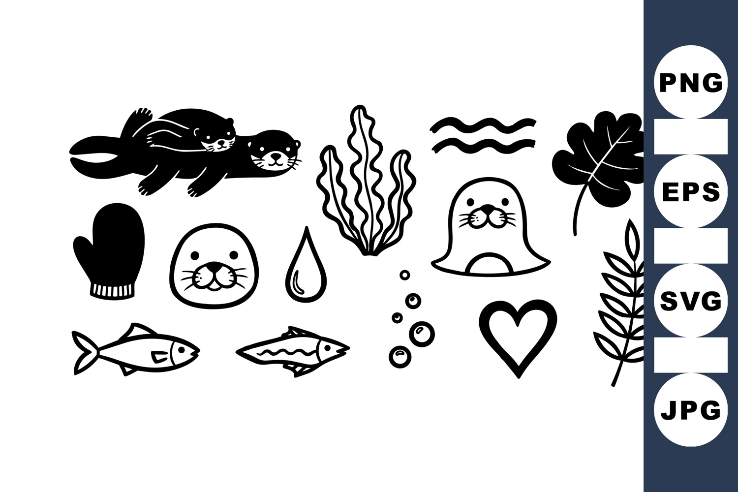 Marine Life Clipart Nautical Clipart Bundle Seal Animal Clipart Hand Drawn Fish Cute Sea Creatures Seaweed Illustration Black Line Doodles Underwater Scene Art Ocean Animals Set Kids Ocean Graphics
