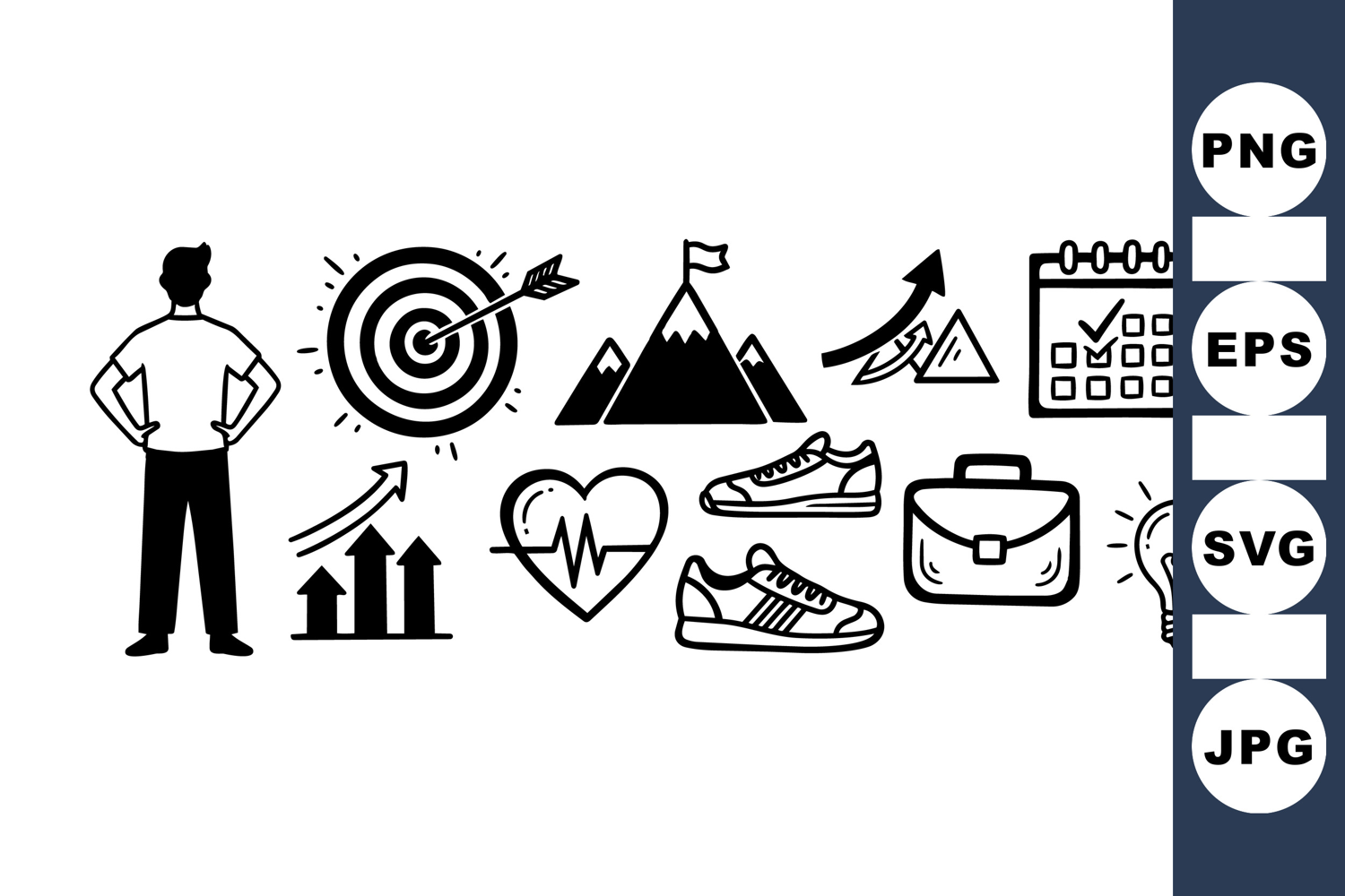 Hand Drawn Icons Planner Sticker Kit Printable Planner Icons Fitness Tracker Icons Productivity Icon Pack Business Goal Icons Motivational Clipart Pack Goal Setting Bundle Personal Development Set Milestone Tracking Bundle