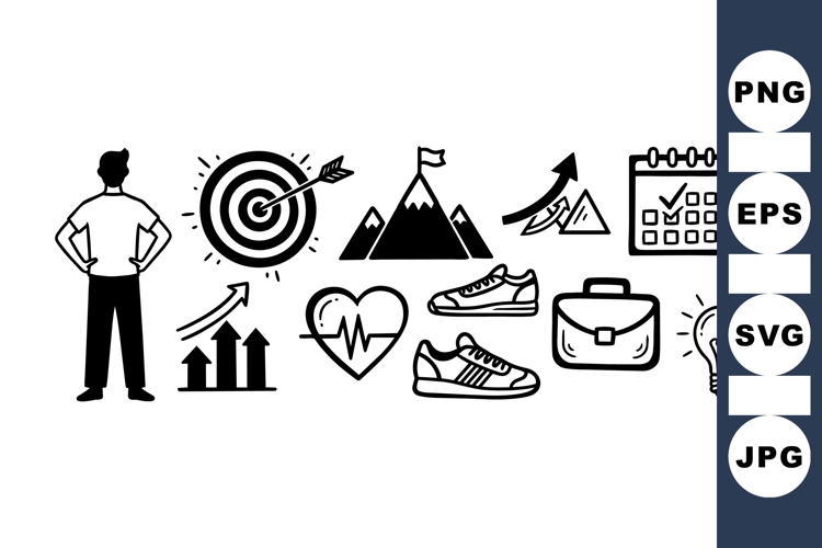 Hand Drawn Goal Setting Doodle Icon Bundle