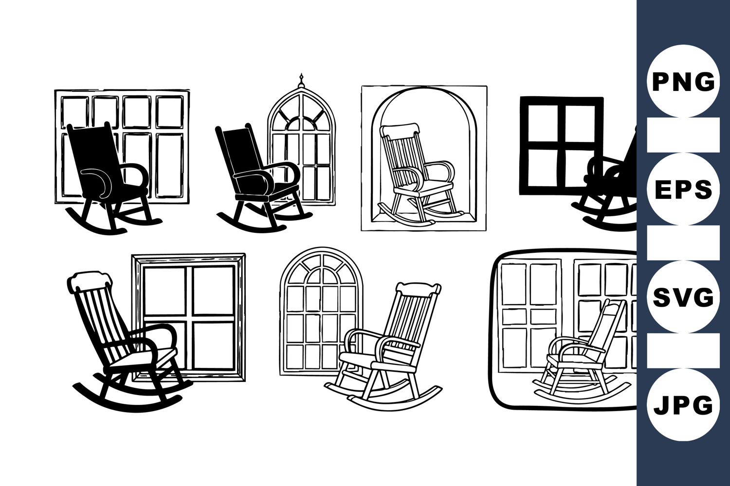 Vintage Rocking Chair Clipart Set for Rustic Decor