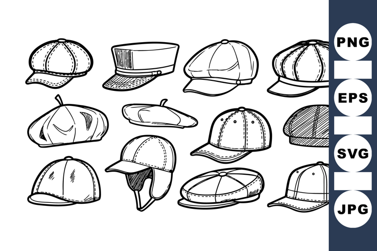 Hand Drawn Vintage Baseball Cap Clipart Bundle for Crafts