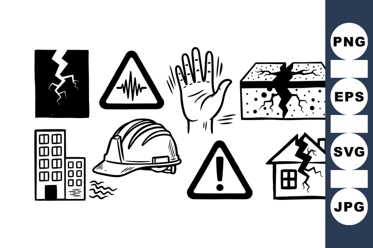 Earthquake Damage Icon Set For Safety Warnings example image 1