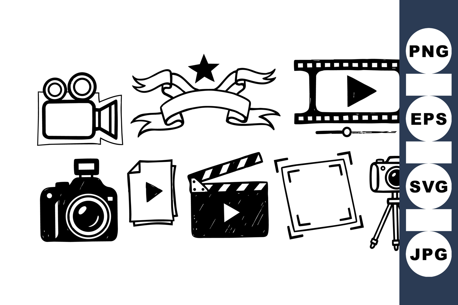 Vintage Hand Drawn Film Icons Clipart Bundle