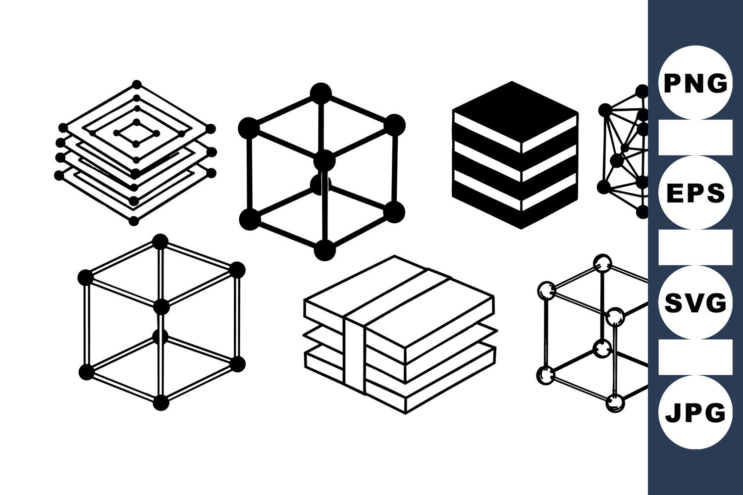 Minimalist Geometric Cube Line Art Vector Set example image 1