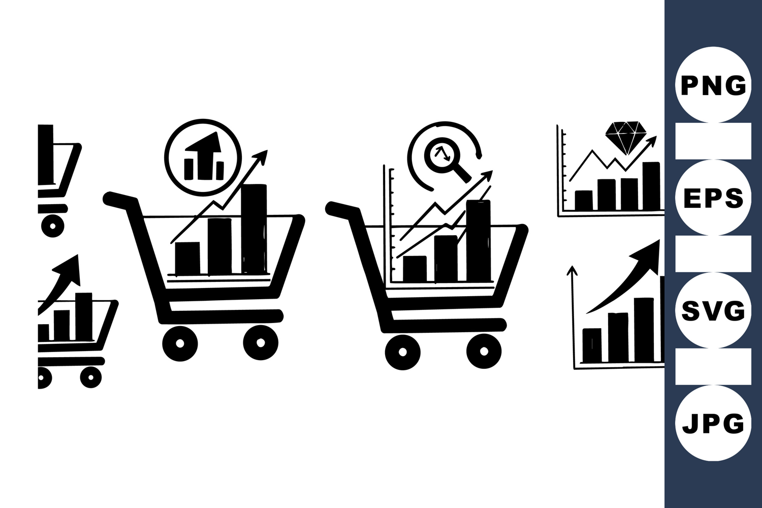 Shopping Cart Graphic Business Growth Icon Marketing Analysis Set Sales Data Chart Financial Progress Icon Market Trends Bundle Analytics Graphic Set Commerce Growth Clipart Business Development Icons Ecommerce Sales Design
