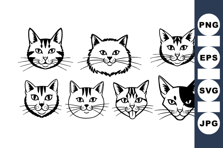 Hand Drawn Cat Face Clipart Bundle for Crafts