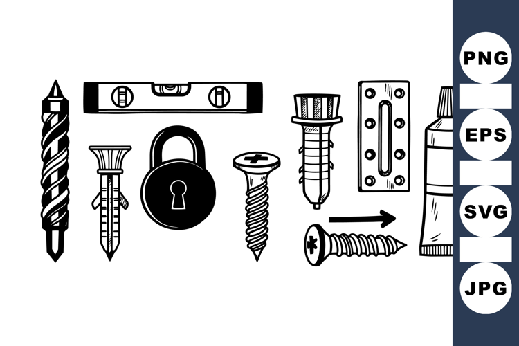Black And White Clipart Diy Project Graphics Hand Drawn Tools Repair Tools Set Tools Clipart Bundle Construction Clipart Pack Industrial Clipart Set Vintage Hardware Clipart Mechanical Tool Clipart Workshop Clipart Bundle