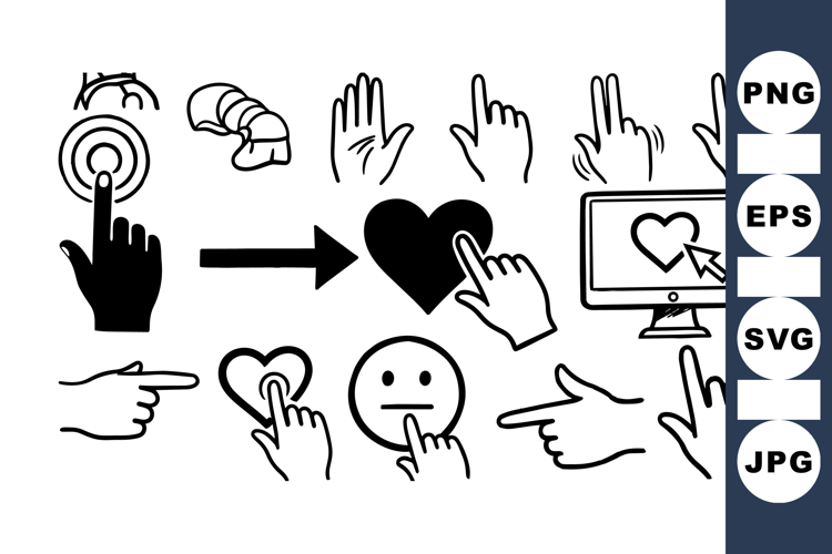 Touch Screen Icon Web Design Icons Hand Gesture Clipart Love Heart Symbol Click Cursor Icon Pointer Finger Graphic Mouse Click Clipart Digital Hand Symbol Interactive Cursor Set Emoji Hand Gesture