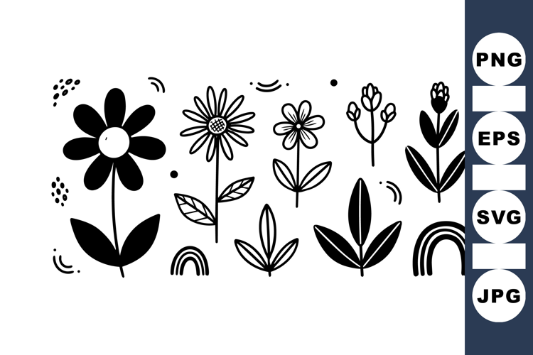Hand Drawn Floral Black And White Flower Spring Floral Bundle Line Art Clipart Botanical Clipart Pack Simple Flower Design Craft Clipart Bundle Cute Floral Graphics Minimalist Flower Set Flower Drawing Collection
