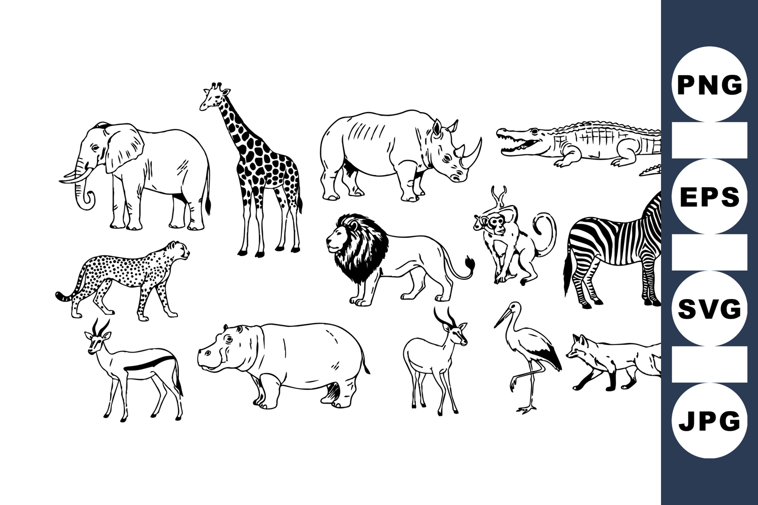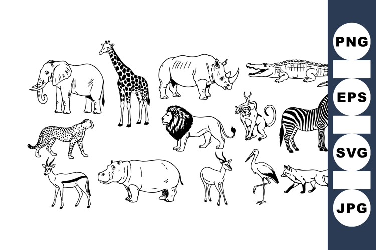 Wild Animal Clipart Safari Animal Clipart Black And White Animals Jungle Animal Graphics African Safari Designs Craft Clipart Collection Wildlife Sketch Bundle Hand Drawn Animal Set Digital Wildlife Clipart Animal Outline Illustrations