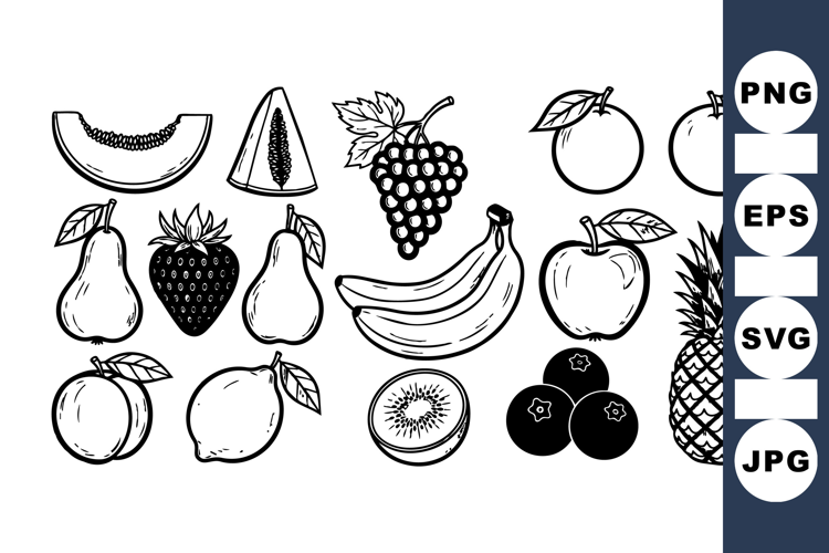 Hand Drawn Fruit Tropical Fruit Clipart Vector Fruit Clipart Summer Fruit Bundle Black And White Fruit Fruit Illustration Pack Fresh Fruit Graphics Fruit Sketch Set Fruit Line Art Minimalist Fruit Art