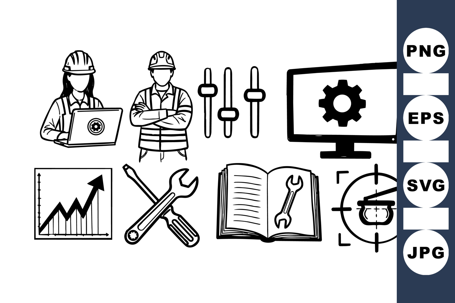 Industrial Tool Graphics Construction Worker Icons Engineering Tools Icons Technical Illustration Set Mechanical Repair Icons Computer Settings Clipart Maintenance Tool Bundle Workshop Gear Clipart Engineering Design Icons Blueprint Drawing Set