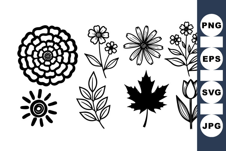 Hand Drawn Floral Vintage Flower Clipart Spring Garden Clipart Craft Supplies Graphics Black Ink Floral Botanical Outline Set Rustic Flower Bundle Nature Leaf Illustrations Flower Sketch Pack Retro Botanical Design