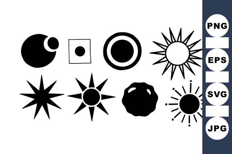 Minimalist Sun Shape Icon Clipart Set for Crafts example image 1