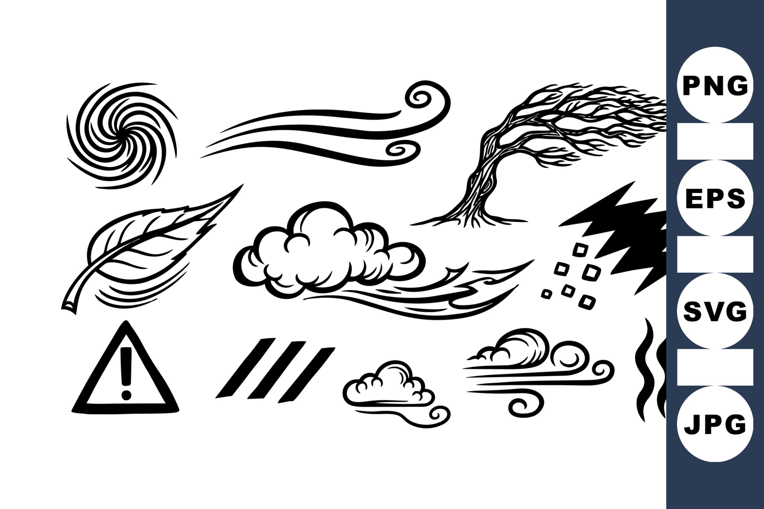 Weather Icon Set Hand Drawn Weather Wind Swirl Clipart Storm Cloud Graphics Weather Hazard Symbols Nature Wind Elements Breeze Clipart Pack Wind Gust Illustrations Cloud Weather Kit Stormy Weather Doodles