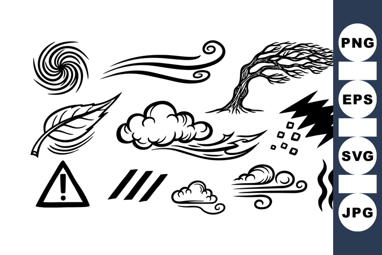 Hand Drawn Wind Weather Icons Clipart Set example image 1