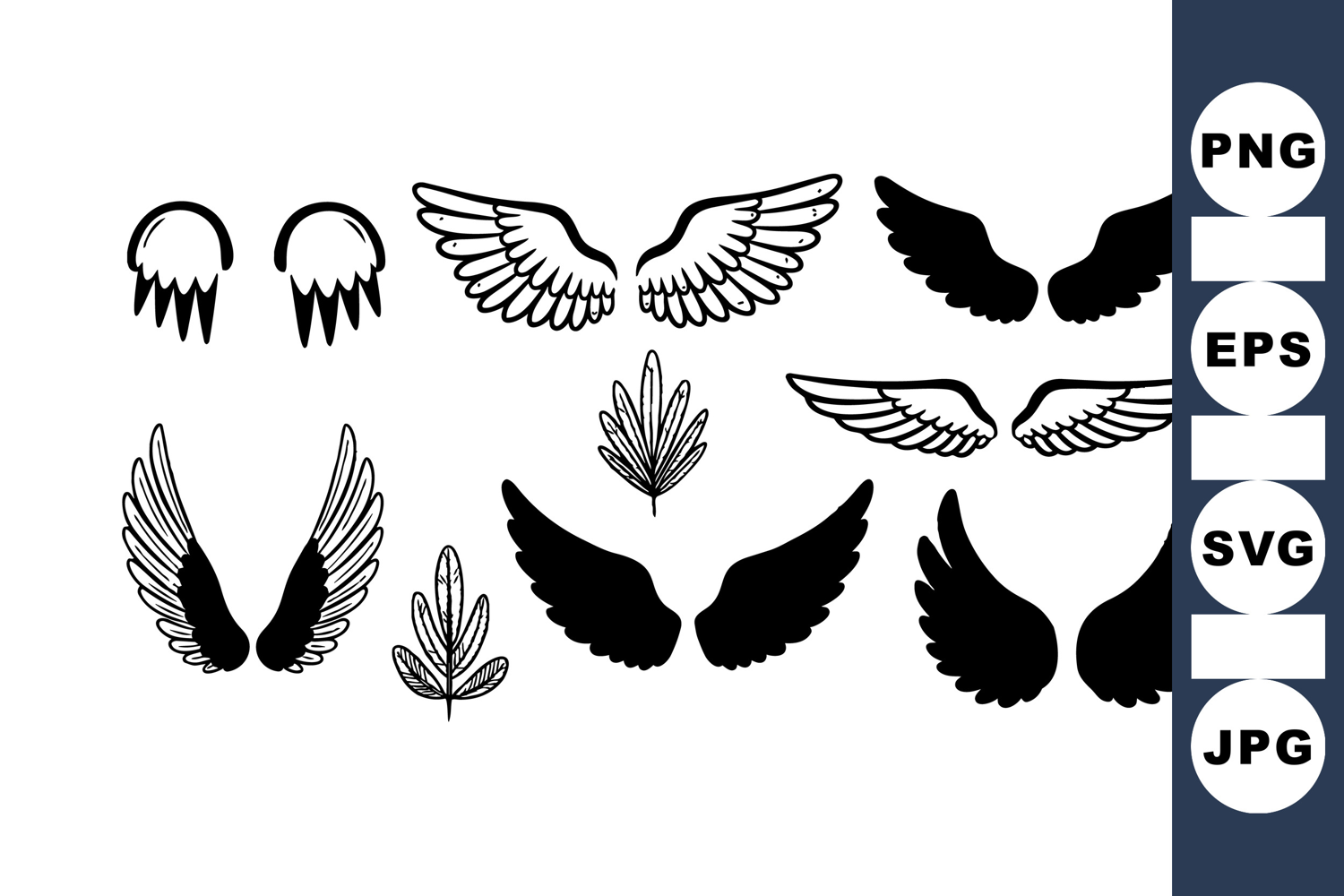 Angel Wings Design Black Wing Clipart Silhouette Feather Set Bird Wing Clipart Dark Feather Bundle Wing Silhouette Art Decorative Wing Pack Vector Wing Collection Flight Wing Graphics Wing Shape Clipart