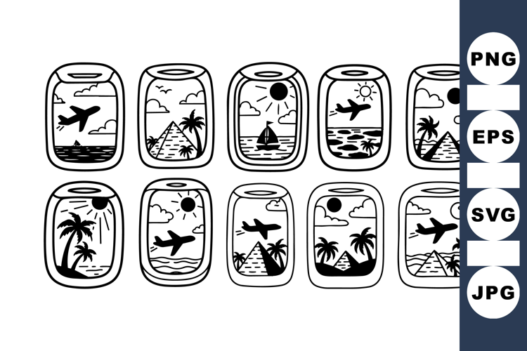 Vintage Travel Airplane and Island Window Clipart Set