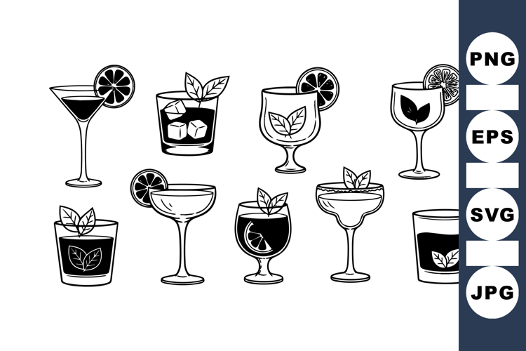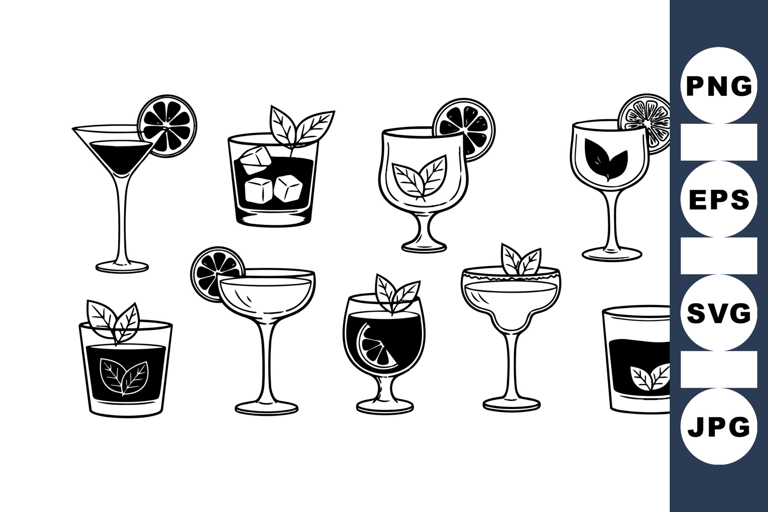 Similar Design Products to Hand Drawn Cocktail Glass Clipart Bundle for Party Designs