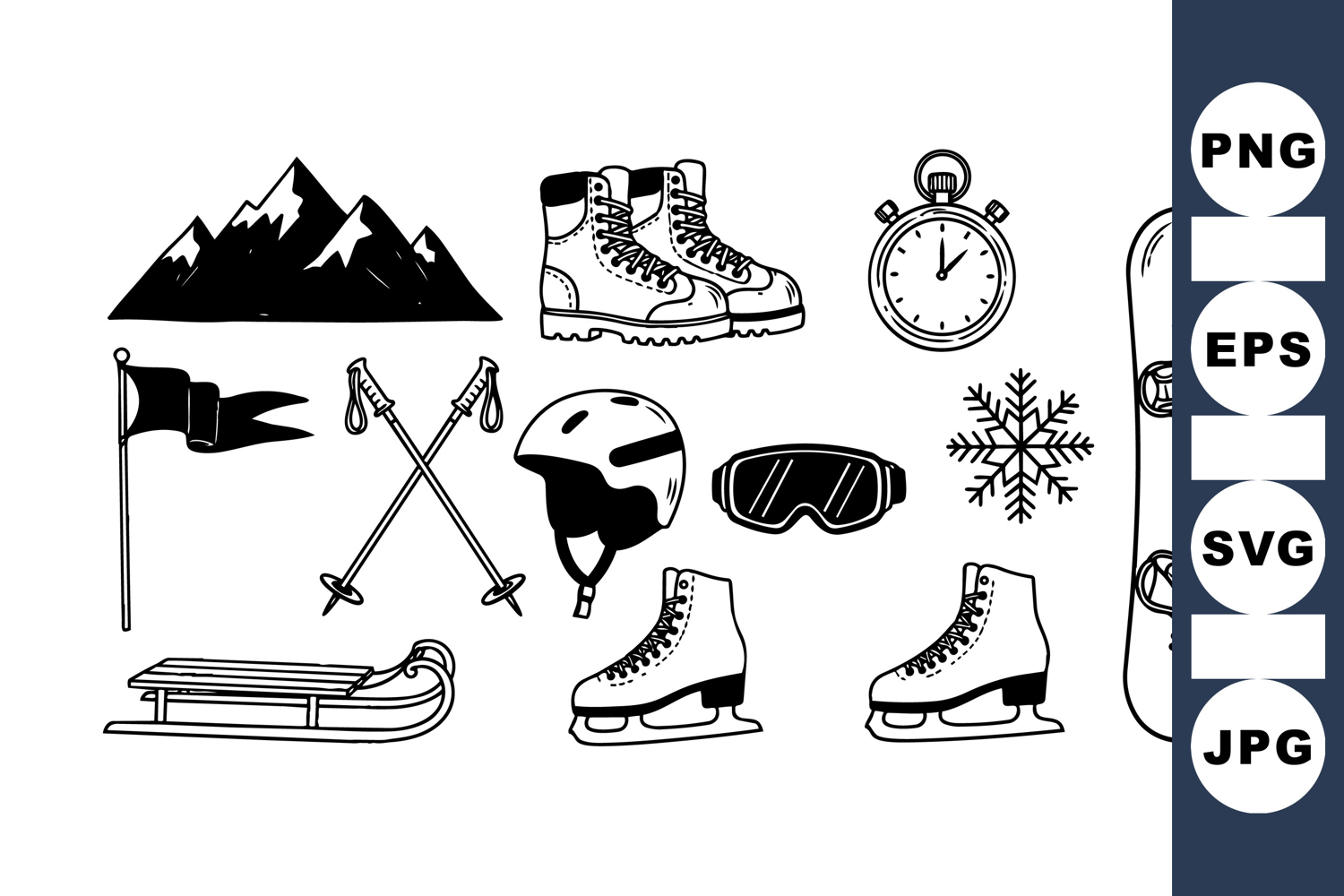Winter Sports Clipart Mountain Adventure Bundle Snowflake Winter Design Ski Equipment Set Snowboard Icon Pack Ice Skate Graphics Winter Gear Illustrations Outdoor Winter Icons Ski Helmet Clipart Sled Winter Bundle