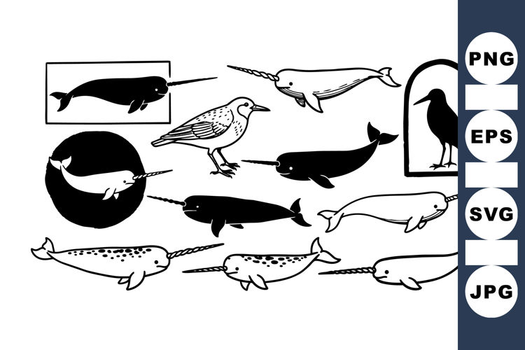 Similar Design Products to Vintage Marine Animals Silhouette Clipart Collection for