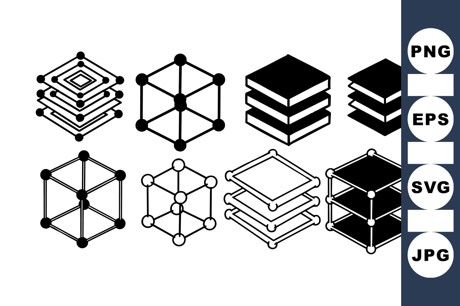 Vector Icon Set Black And White Icons Minimalist Icon Set Modern Design Icons Geometric Shape Pack Isometric Cube Icon Stacked Block Icons 3d Cube Graphic Digital Vector Graphics Outline And Solid Icons