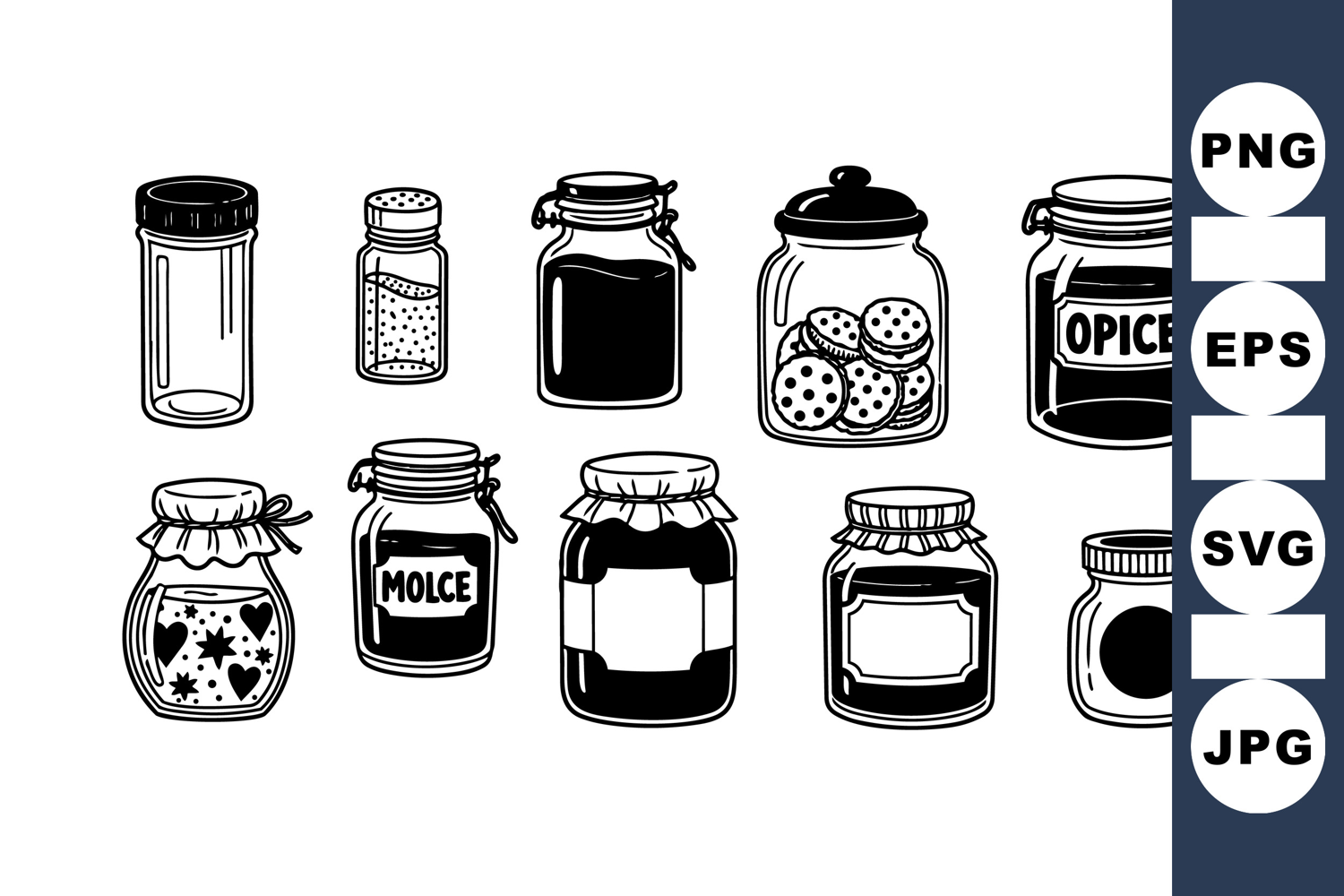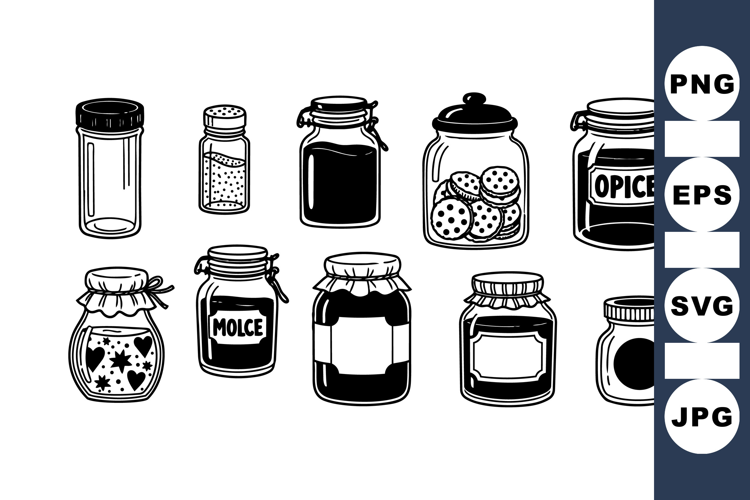 Mason Jar Graphics Rustic Kitchen Art Organic Herb Clipart Vintage Jar Clipart Black White Illustration Hand Drawn Spice Kitchen Spice Bundle Retro Cooking Design Spice Jar Set Canning Jar Collection