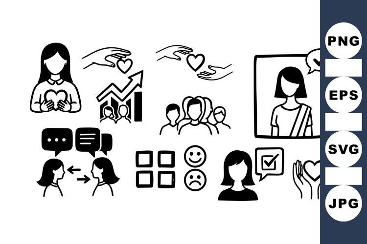 Social Media Icons Digital Marketing Graphics Business Communication Icons Social Network Symbols Team Collaboration Graphics Online Chat Symbols Customer Support Clipart User Profile Illustrations Feedback Rating Icons Interaction Hand Gestures