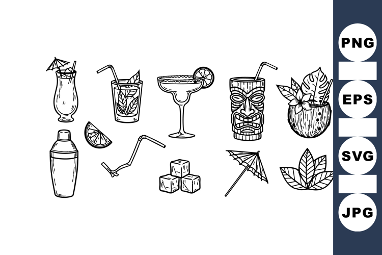 Similar Design Products to Hand Drawn Tropical Cocktail Vector Bundle For Party Design