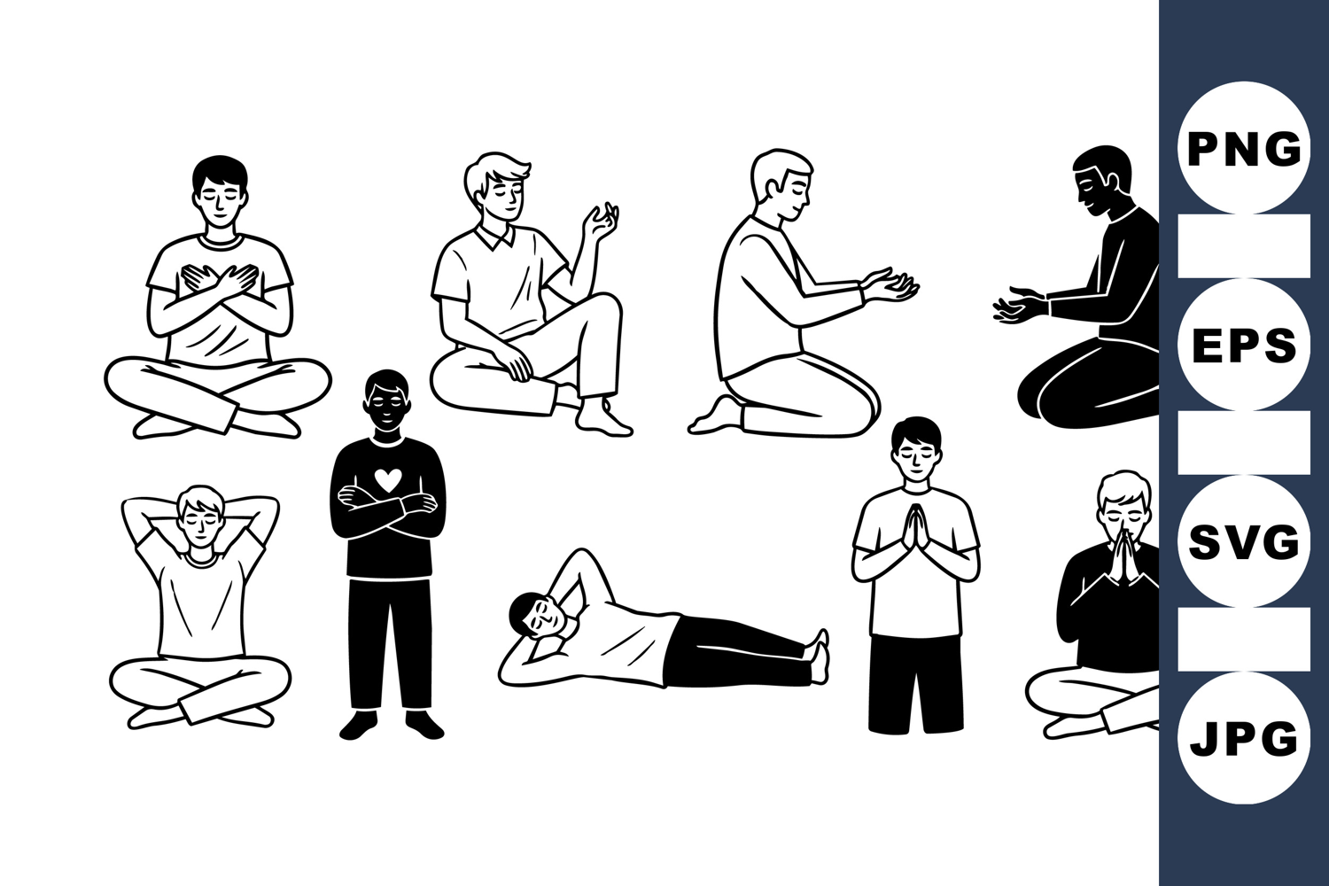 Meditation Pose Silhouette Clipart Pack for Wellness