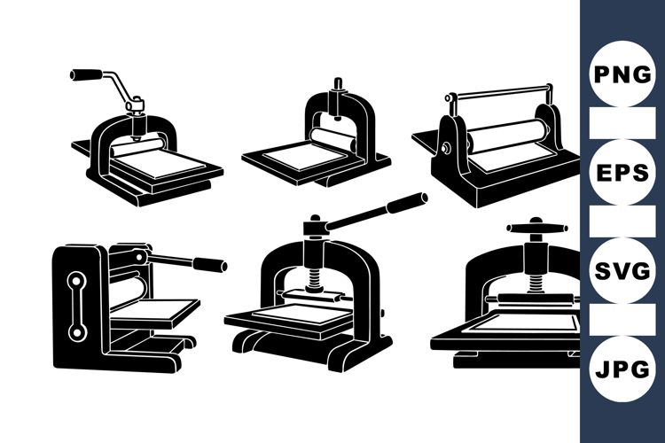 Letterpress Clipart Set Vintage Printing Press Black Press Clipart Retro Print Machine Industrial Press Graphics Old Printing Equipment Print Shop Illustrations Manual Press Images Printing Craft Bundle Antique Machine Clipart