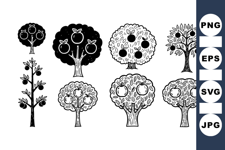 Black And White Tree Hand Drawn Fruit Vintage Garden Clipart Fruit Tree Clipart Nature Illustration Set Retro Botanical Design Vintage Fruit Tree Fruit Tree Bundle Seasonal Botanical Pack Ornamental Tree Clipart