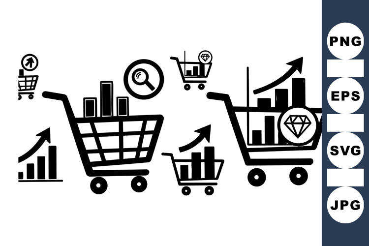 Black Silhouette Icons Shopping Cart Icons Vintage Ecommerce Graphics Retail Business Symbols Marketplace Icon Set Commerce Clipart Bundle Consumer Purchase Icons Shopping Vector Collection Sale Icon Pack Storefront Graphic Set