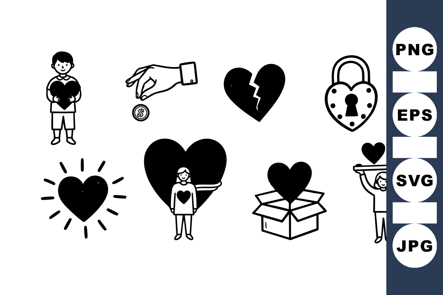 Broken Heart Symbol Romantic Love Icons Valentine Day Vector Love Heart Icon Affection Symbol Set Locked Heart Graphic Hand Giving Coin Person Holding Heart Heart Box Clipart Heart Emotion Graphics