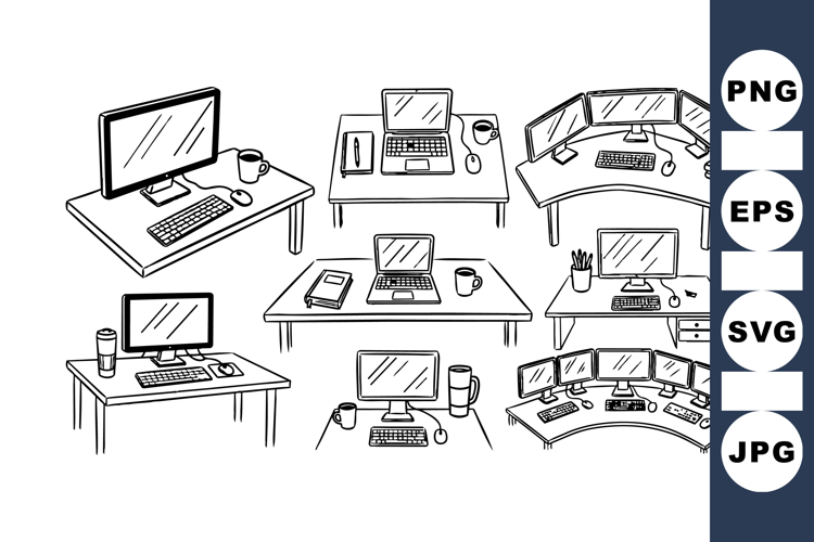 Minimalist Office Desk Clipart Bundle For Work Designs