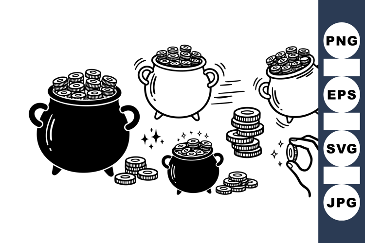 Hand Drawn Lucky Pot Of Gold Clipart Bundle For St Patrick
