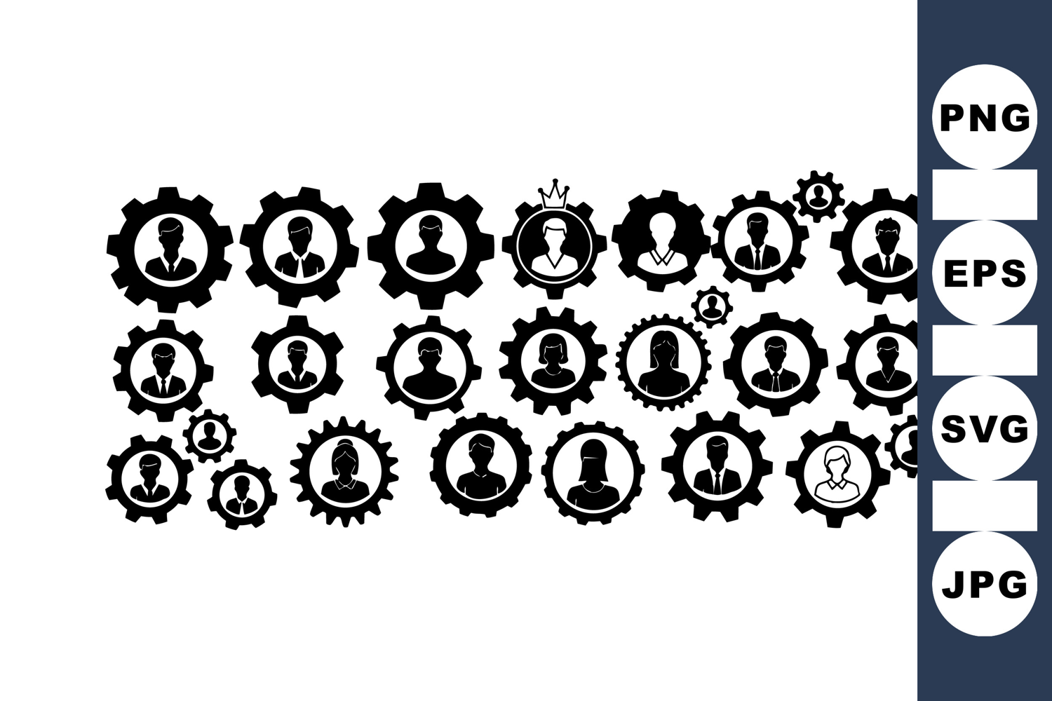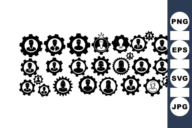 Collection of black and white silhouette portraits featuring diverse business individuals in circular frames, presented in a simple flat graphic style, suitable for professional contexts and editorial use, clean and minimalistic.