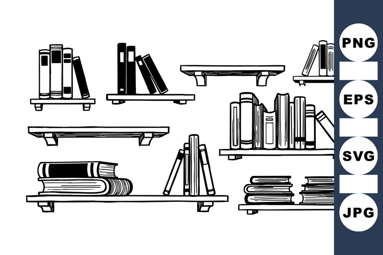 Hand Drawn Vintage Bookshelf Clipart Bundle For Print