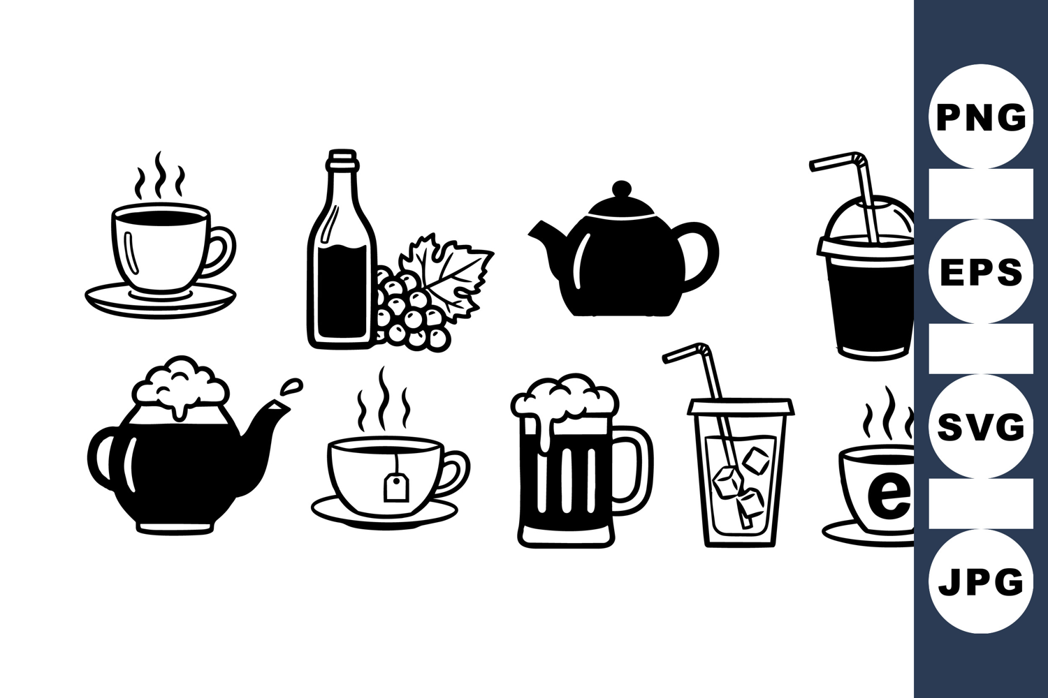 Hand Drawn Clipart Coffee Mug Design Tea Pot Drawing Hot Beverage Clipart Line Art Graphics Coffee Shop Design Tea Cup Illustration Drinkware Clipart Set Breakfast Clipart Pack Cold Drink Illustrations
