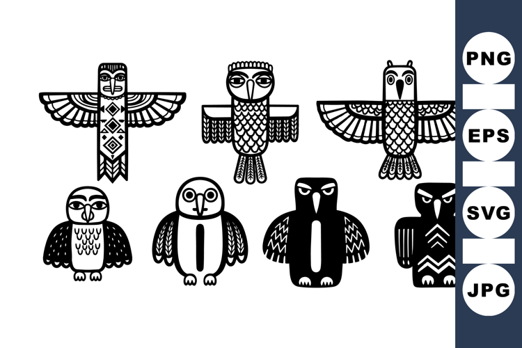 Similar Design Products to Hand Drawn Tribal Owl Totem Clipart Bundle for Crafts