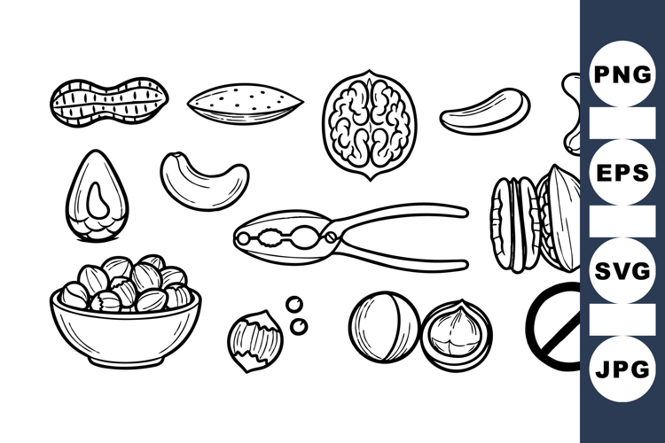 Hand Drawn Nut Clipart Bundle for Healthy Snacks