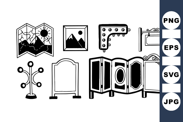 Hand Drawn Frames Vintage Home Decor Retro Clipart Bundle Decorative Wall Art Crafting Clipart Set Antique Furniture Clipart Classic Room Decor Vintage Coat Rack Ornate Mirror Set Retro Room Divider