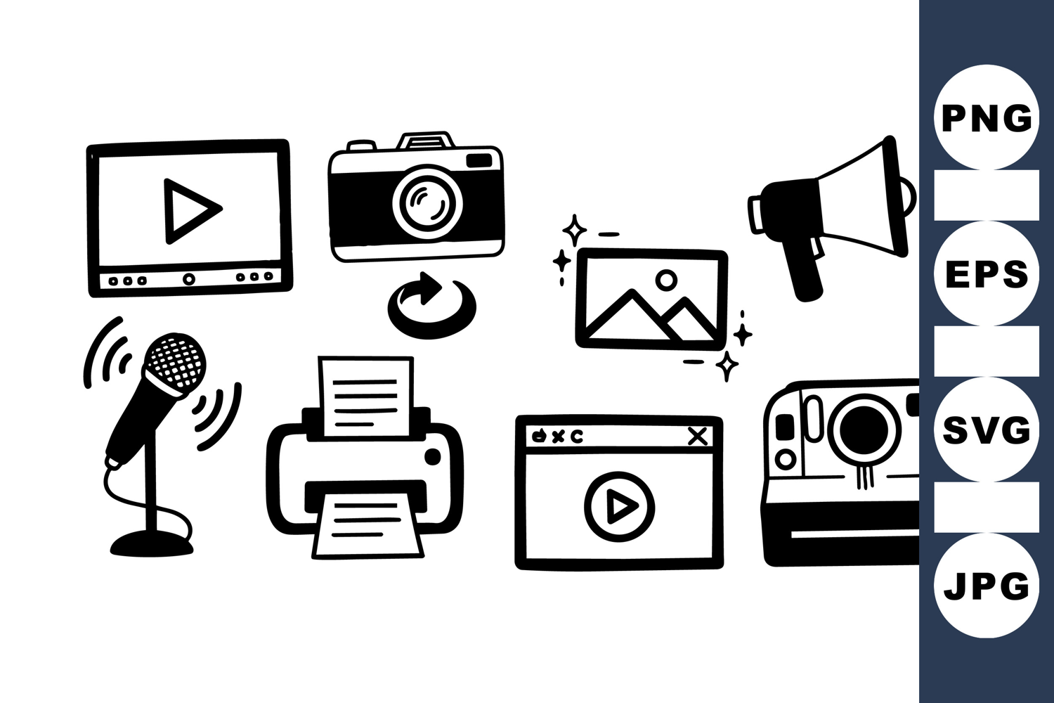 Hand Drawn Icons Social Media Icons Digital Scrapbooking Kit Commercial Use Bundle Camera Clipart Set Multimedia Icon Pack Printable Icon Collection Retro Media Bundle Microphone Vector Icons Video Player Graphics