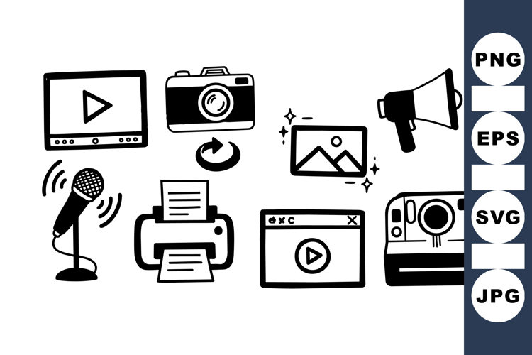 Hand Drawn Media Icon Bundle For Creatives